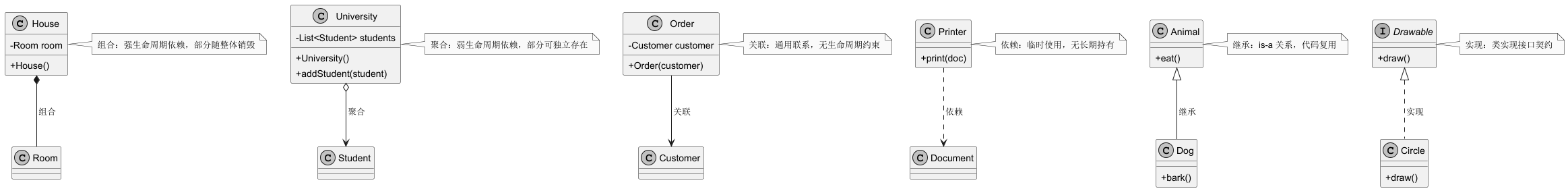 - 与聚合关系的核心区别:聚合的部分可独立(如网关与设备),组合的部分不可独立。