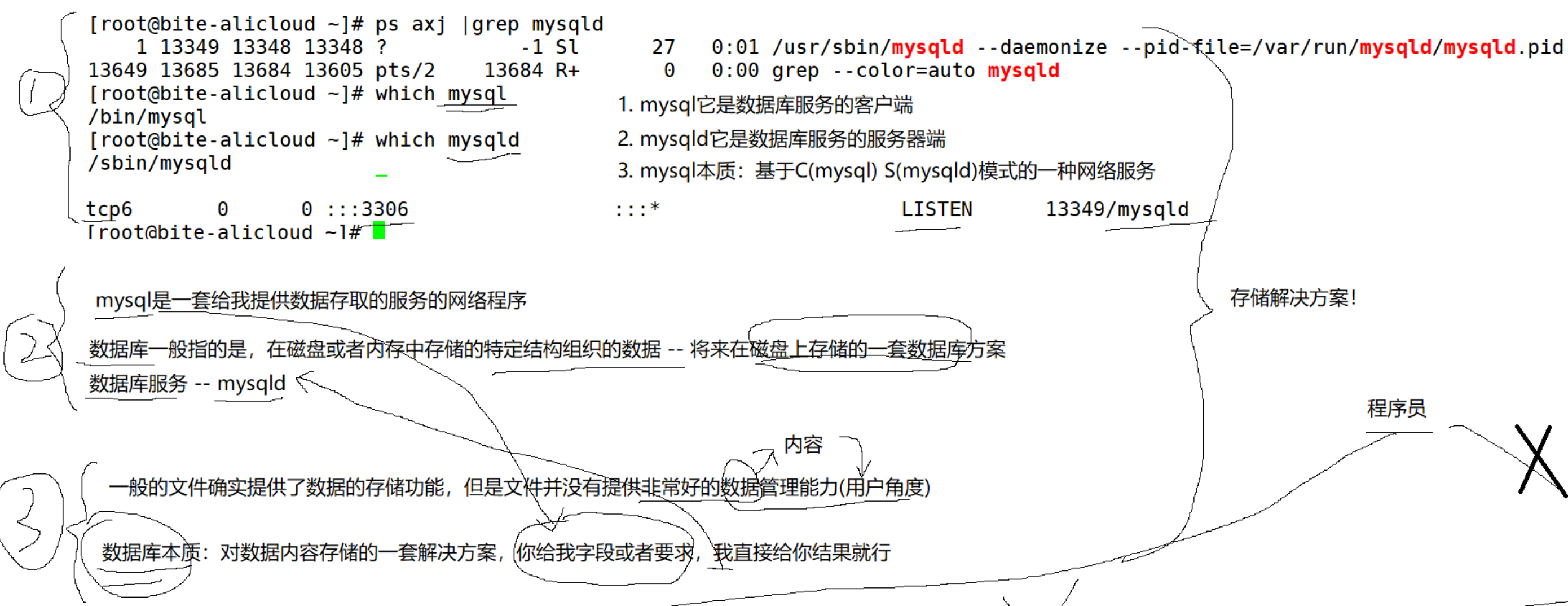 2)数据库本质:对数据内部存储的一套解决方案,你给我字段或要求,我直接给你结果(C/S模式)