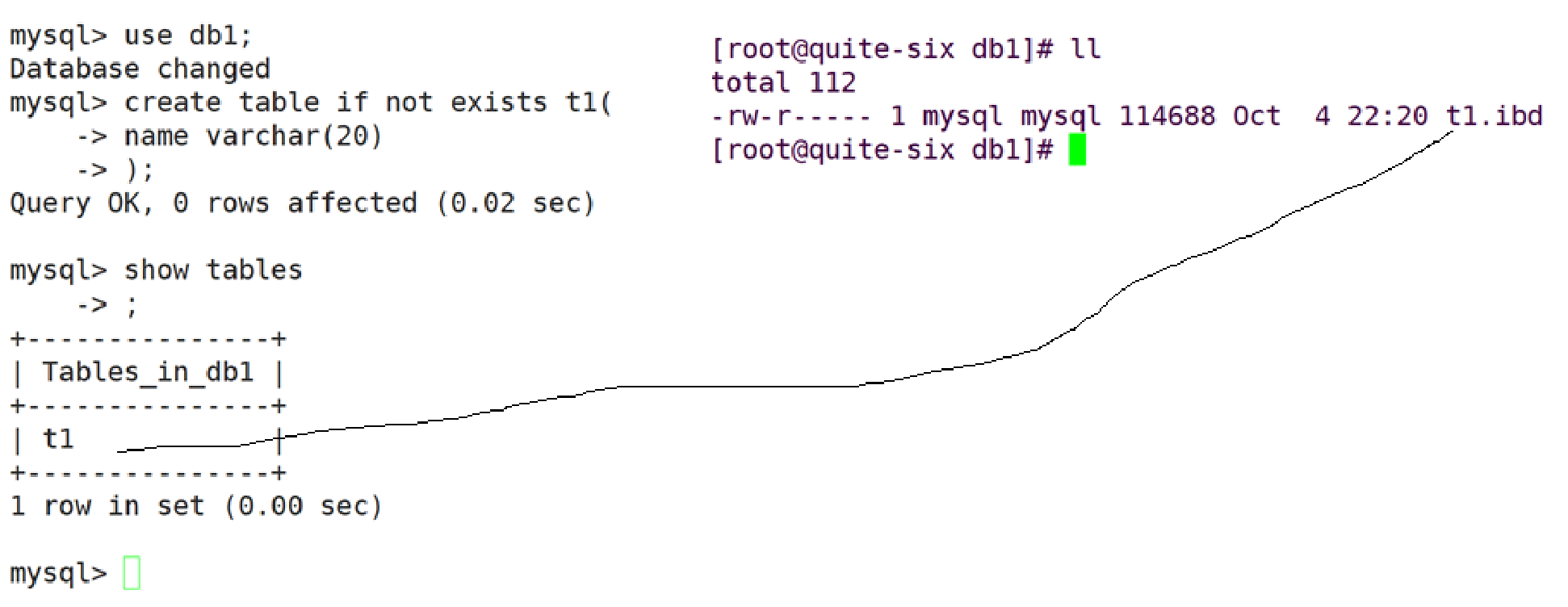 2)在数据库内建立表,本质就是在数据库目录下创建相应的文件