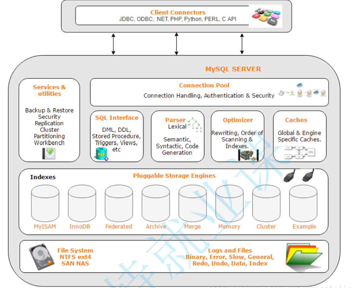 MySQL的核心就是插件式存储引擎,支持多种存储引擎。