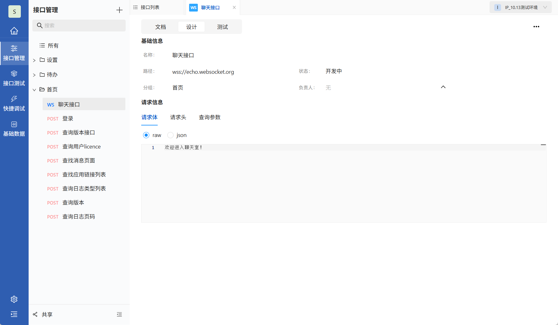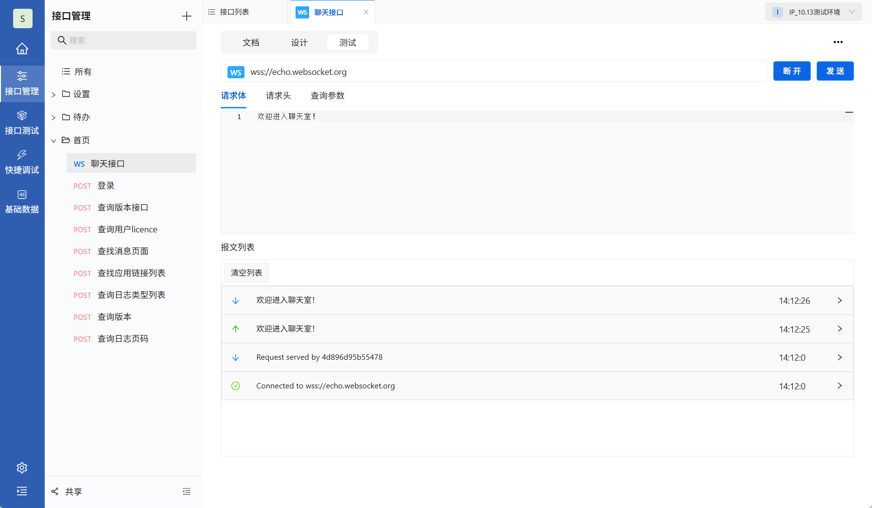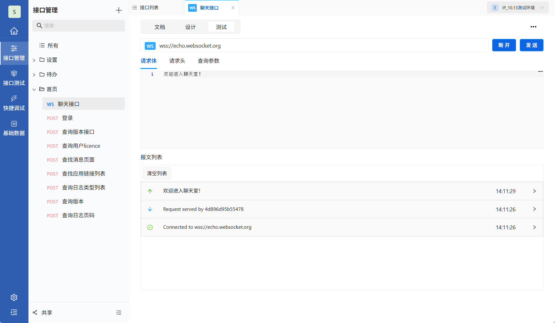 PostIn是一款国产开源免费的接口管理工具,相比常用的PostMan工具有着轻量、简洁易用的特点,同时对接口文档、接口自动化测试功能更为全面。本文将介绍如何调试WebSocket接口。