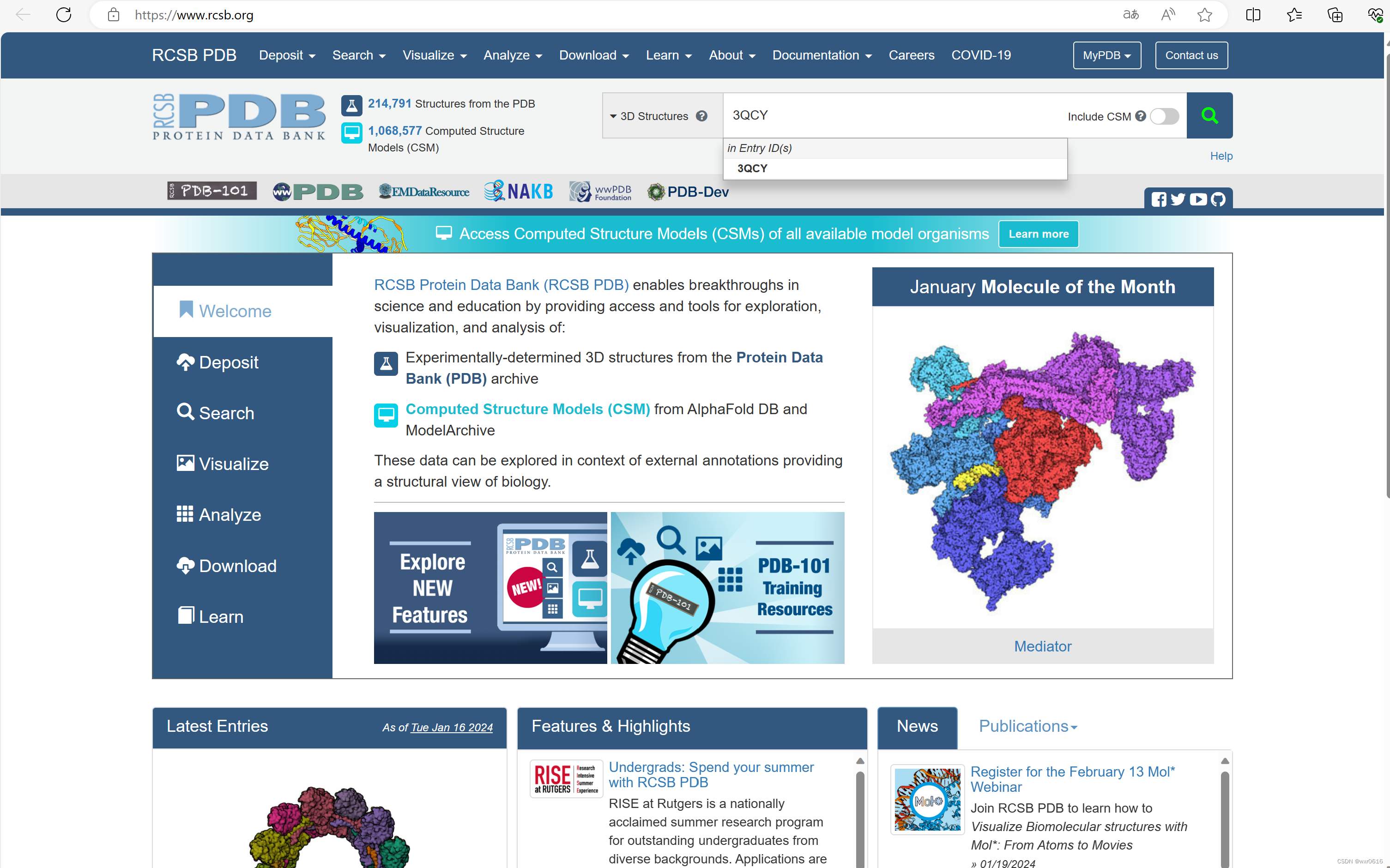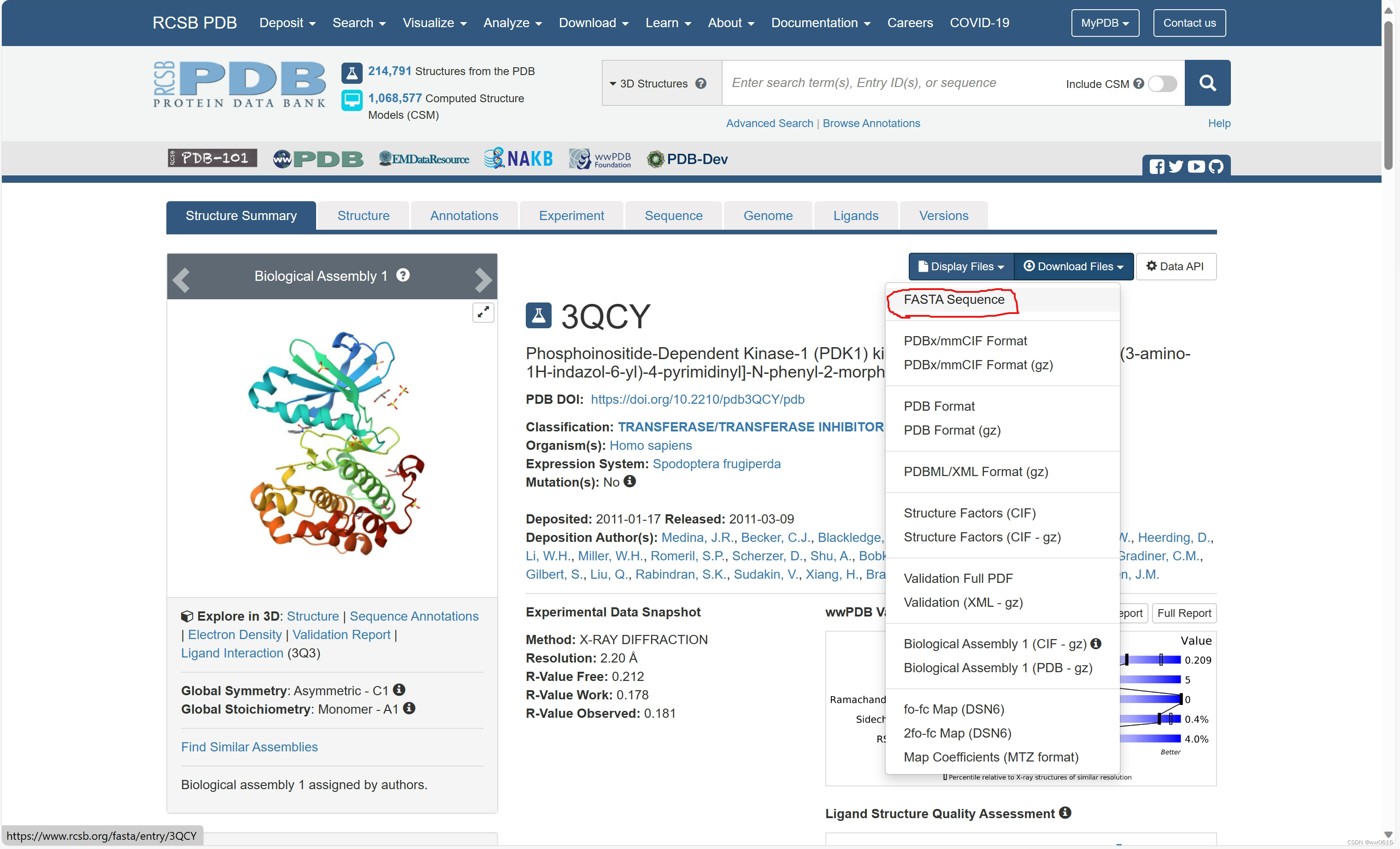 在PDB数据库中搜索 3QCYPDB数据库地址https://www.rcsb.org/
