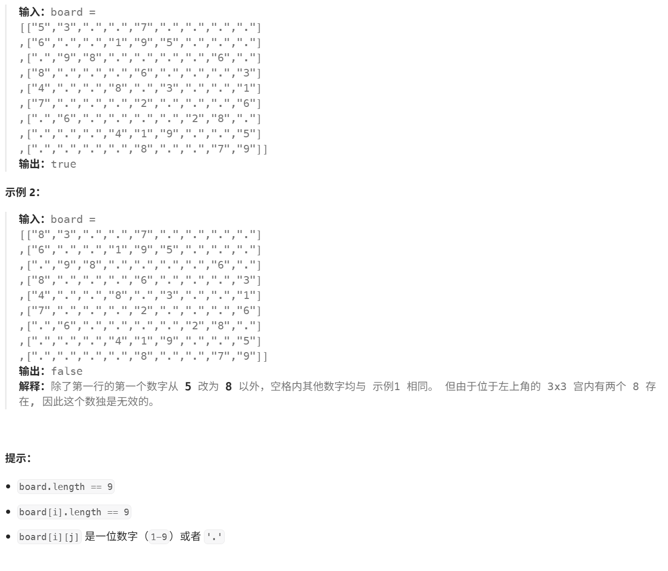 最后,如果遍历完成,均合法,则返回true,表示这个数独是合法的。