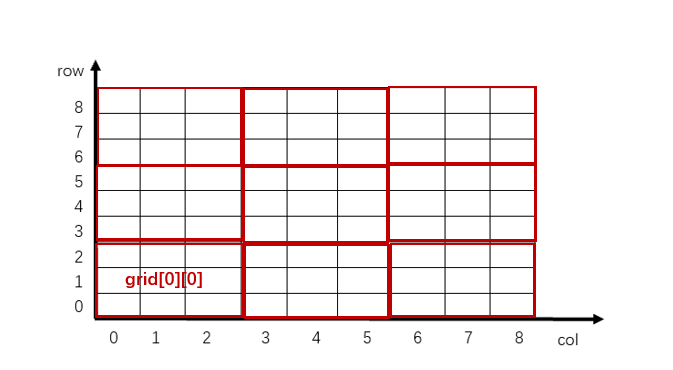grid[0][0]表示第0行,第0列的3*3宫格,经过观察我们发现: