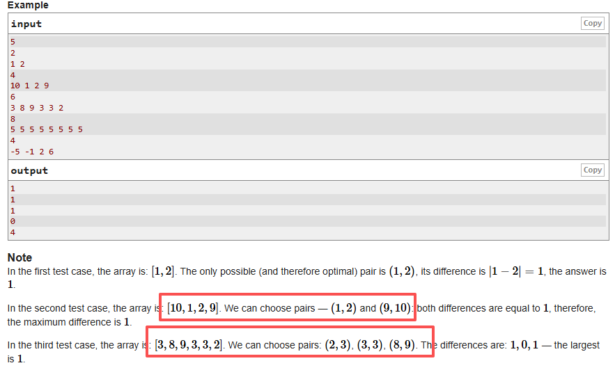 最小可能的,最大差值,在元素的对对中,根据NOTE就可以推理出来。