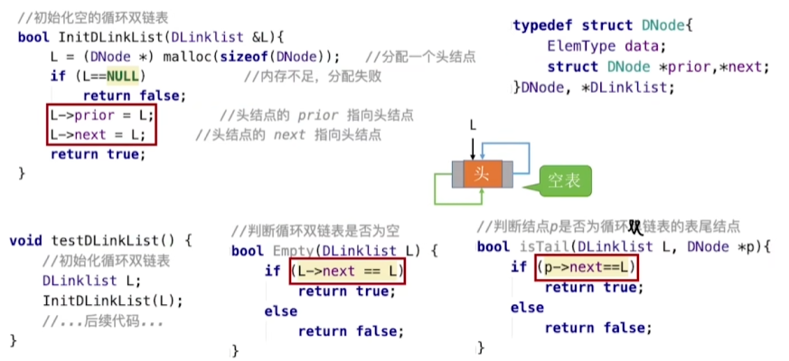 循环双链表:(其主要操作和双链表的操作基本一致,不用再赘述)