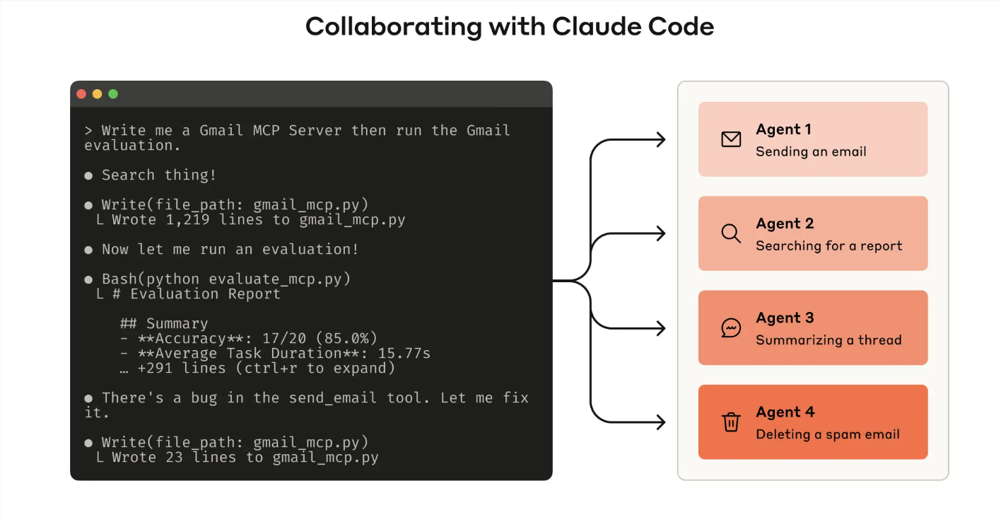 参数后附加无关内容导致结果偏差,正是通过 “工具调用日志分析” 才定位到问题,最终通过优化工具描述解决。借力代理优化,实现 “自我迭代”:最令人惊喜的是,代理本身可成为工具优化的助手。将评估过程中的代理记录(包括工具调用、推理过程)输入 Claude Code,它能自动分析问题 —— 小到修正矛盾的工具描述,大到重构工具实现以保持逻辑自洽。Anthropic 内部实践表明,这种 “代理参与优化” 的模式,甚至能让工具性能超越专家手动编写的版本,足见其价值。
