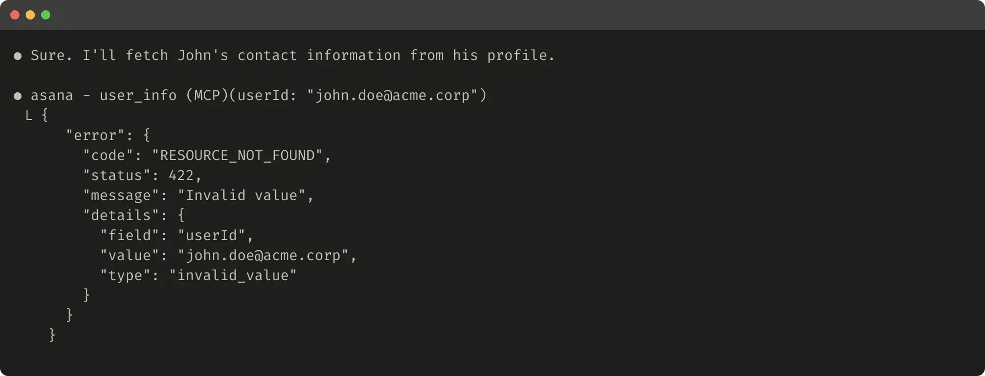 等能直接指导代理决策的字段。曾有案例显示,将字母数字 UUID 解析为语义化名称(如 0 索引 ID),能显著降低代理幻觉,提升检索准确率。若代理需兼顾自然语言交互与下游工具调用,可添加response_format