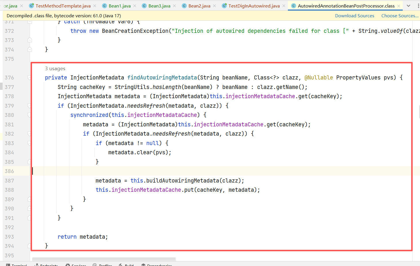 继续看源码里面是如何实现的,先使用了下面方法查找@Autowired注解。