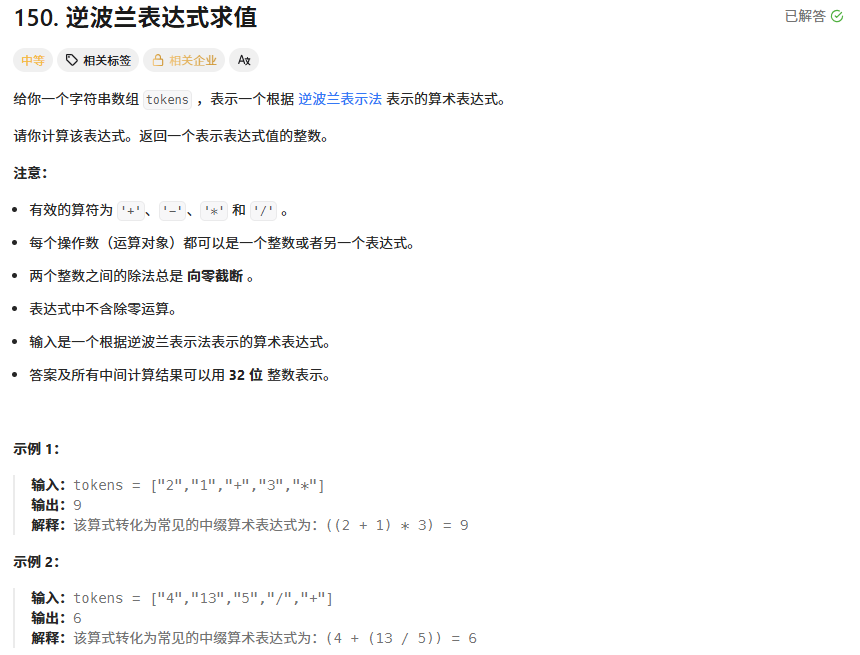 习题链接:150. 逆波兰表达式求值 - 力扣(LeetCode)