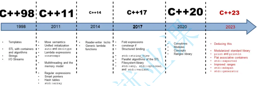 在之前学习的过程中,我们学习的都是C++最早的版本——C++98的内容。C++98特性固然不错,但是为了迎合更加现代的C++开发方式,我们必须要学习C++更加现代化的内容。