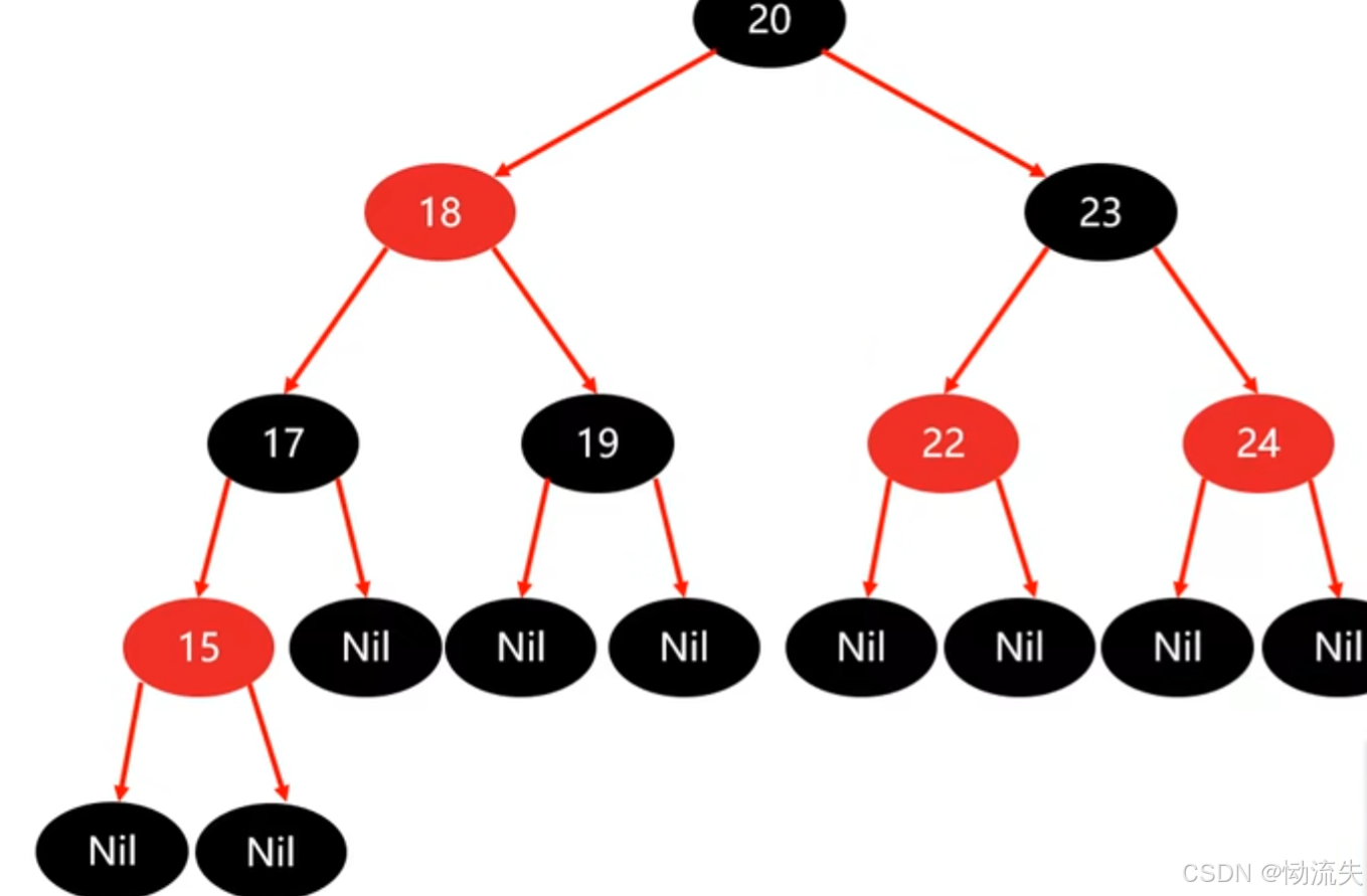 - 如果某一个节点是红色的,则它的子节点必须为黑色(既不能出现红红相连的情况)