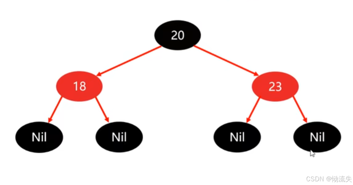1.添加数据"22"时,发现违背了红红相连的规则,则需要进行调整颜色,因为数据"22"的父节点"23"为红,叔叔节点"18"也为红,根据规则进行变换