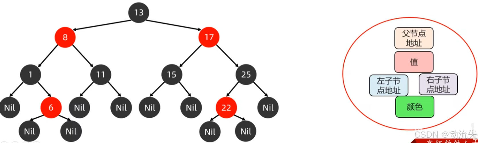 - 如果节点没有子节点或父节点,则该节点相应地指针属性为nil,这些nil视为叶节点,每个叶节点(nil)是黑色的