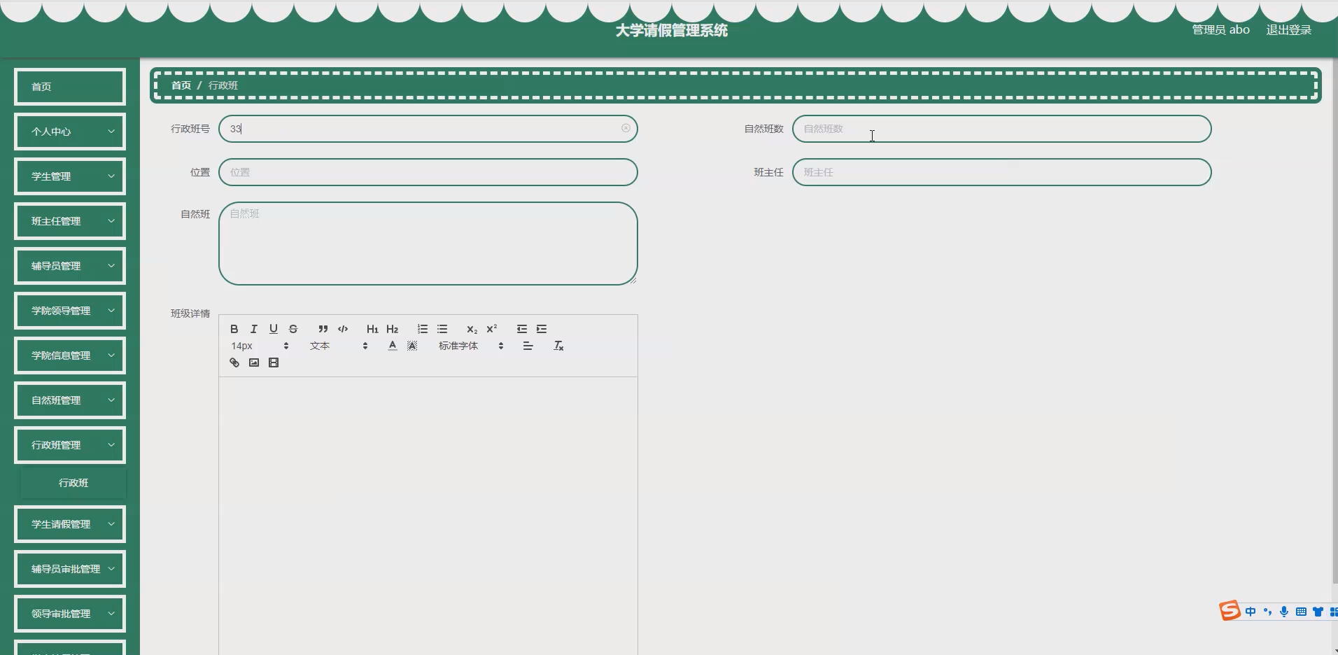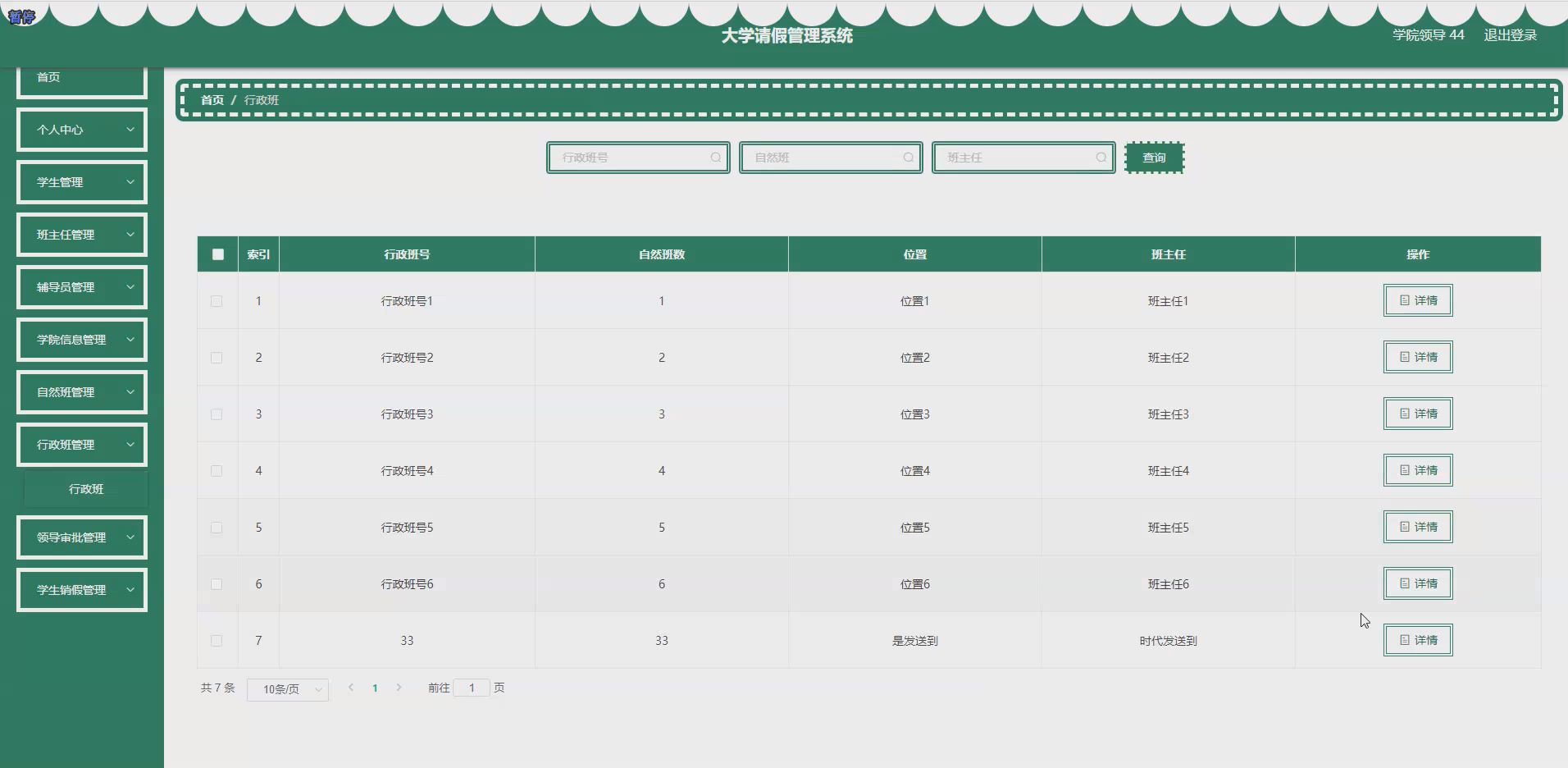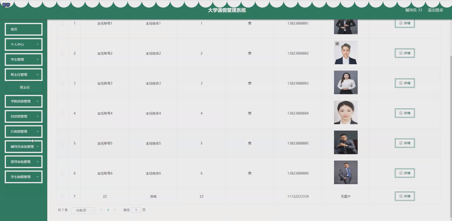 学院信息,自然班,行政班,学生,班主任,辅导员,学院领导,学生请假,辅导员审批,领导审批,学生销假