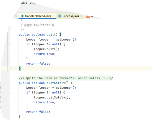 另外,当需要终止handlerThread时记得调用quit或quitSafely。其中quitSafely会等消息都处理完再退出消息循环。