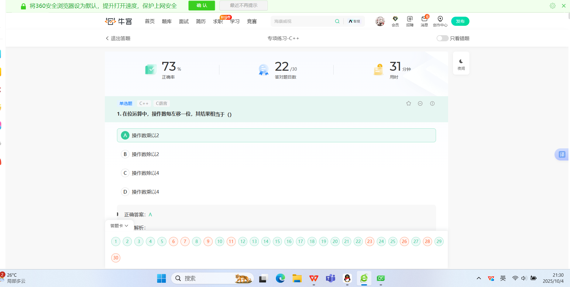 1.1、以下程序的输出结果是____A____。