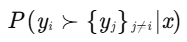 其中,表示在给定输入x的情况下,输出yi相对于其他所有输出{yj}j≠i的偏好概率;τ是正则化参数,用于控制策略与参考模型的偏离程度。