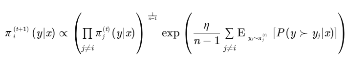 该更新规则确保策略更新既考虑了对手策略的分布,又考虑了当前策略相对于对手策略的偏好优势。