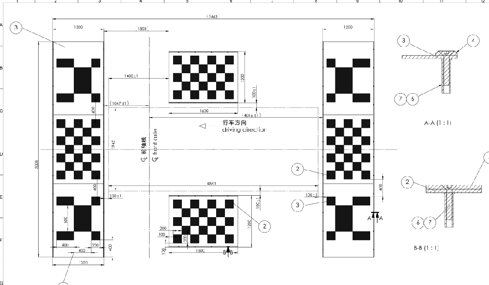 环境因素同样不容忽视,要确认周围没有强光源干扰摄像头。强光源,比如直射的太阳光、大功率的探照灯等,会使摄像头采集的图像出现过曝现象,丢失很多细节信息,让后续的特征点提取和图像处理变得困难重重 。同时,后备箱、车门也要保证没有打开,这些部件的开启会改变车辆的整体轮廓和摄像头的相对位置,干扰标定的准确性 。另外,通常会选择在专门的标定场地进行操作,比如具备稳定环境条件的标定室。标定室的光照要求漫反射光,由 LED 灯管垂直照明,这样可以避免普通荧光、日光灯管的 50HZ 频闪,环境光照亮度值一般在 300lux - 3000lux 之间,既能保证有足够的光线供摄像头采集图像,又不会过亮或过暗 。地面上还会布置黑白格 360 环视标靶,白色采用劳尔色号 RAL9016 交通白(RGB 值为 255,255,255),黑色采用劳尔色号 RAL9017 交通黑(RGB 值为 7,7,7),并且要求采用全哑光黑白油漆或铺色麻面瓷砖,避免反光,60cm×60cm 的格子与目标位置最大偏差小于 ±2mm ,这些标靶就像是给摄像头提供了精准的参考坐标,帮助后续的标定工作更加准确 。