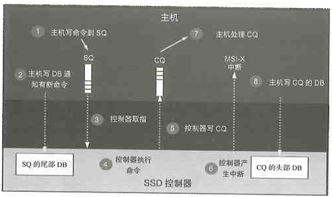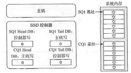 SQ/CQ 可以在主机的内存中,也可以在 SSD 中,但一般在主机内存中(本书中除非特殊说明,不然都是基于 SQ/CQ 在主机内存中进行介绍);