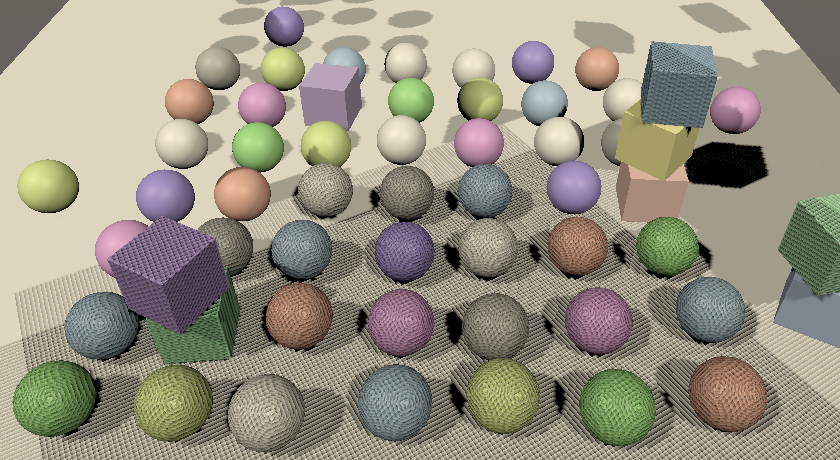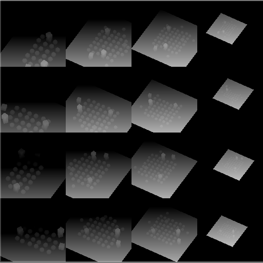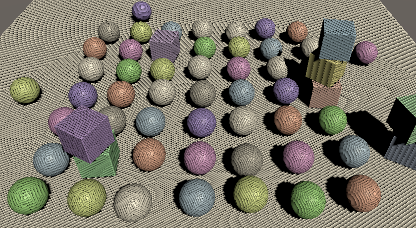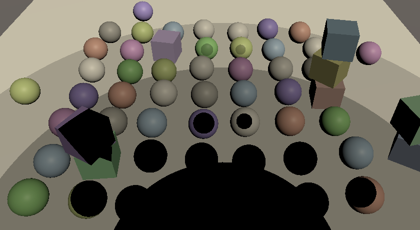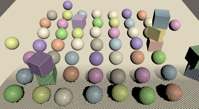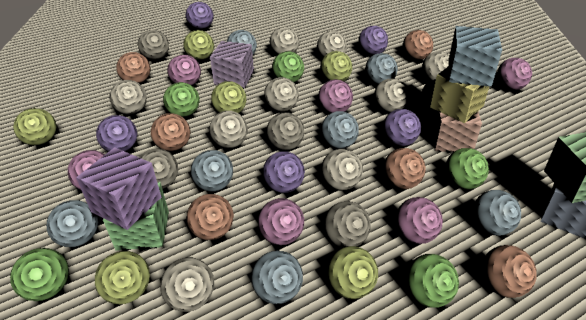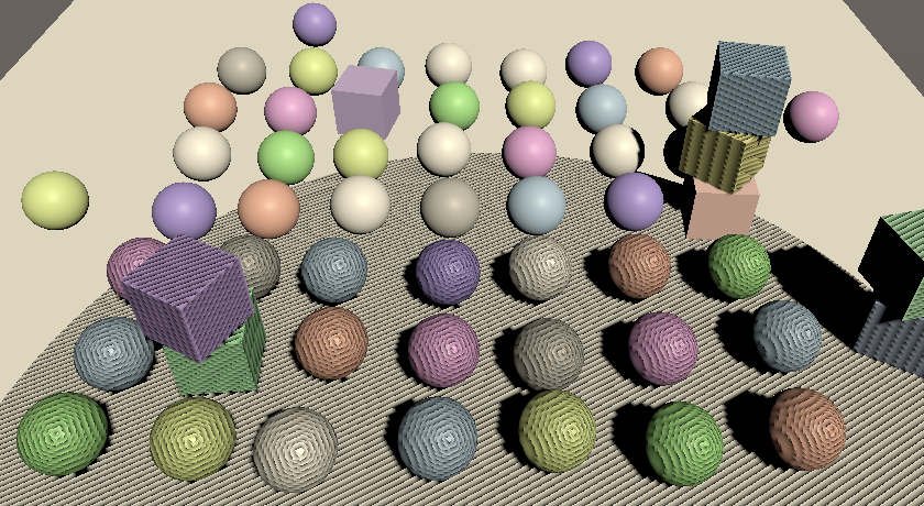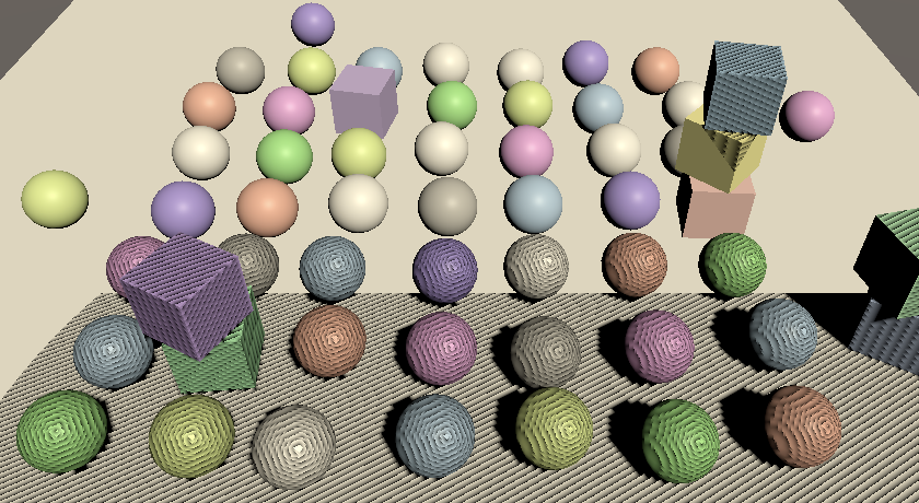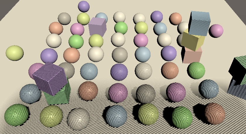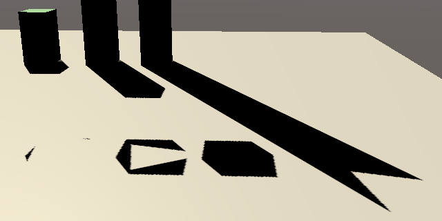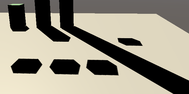 由于每个纹素的抖动图案是固定的,重叠的半透明阴影投射物不会投射出组合的更深阴影。效果取决于最不透明的阴影投射物。此外,由于生成的图案具有噪点,当阴影矩阵变化时会产生更多的时间伪影,可能导致阴影出现颤动。这种方法对于具有固定投影的其他光源类型效果更好(只要物体不移动)。对于半透明物体,通常更实用的做法是使用裁剪阴影或完全不使用阴影