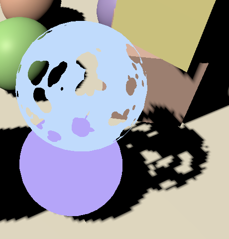 抖动可用于模拟半透明阴影投射物,但这是一种相当粗略的方法。硬抖动阴影看起来效果不佳,但在使用较大的PCF滤波器时可能会显得可接受