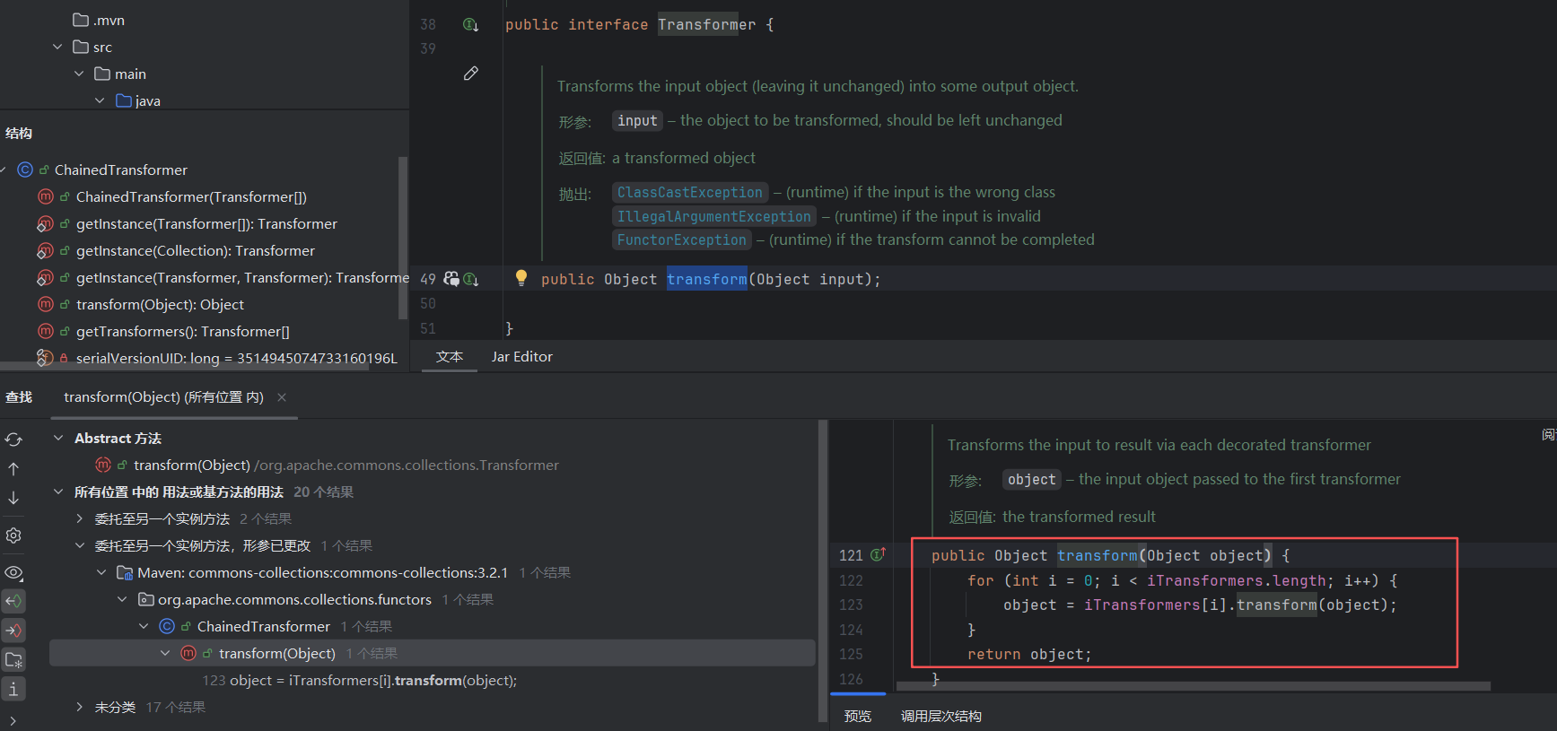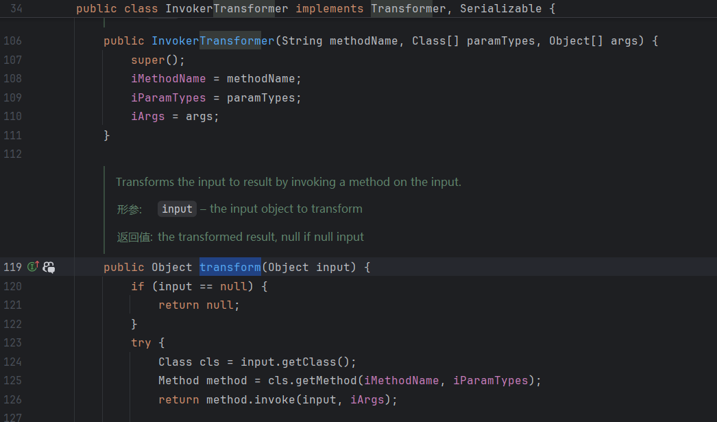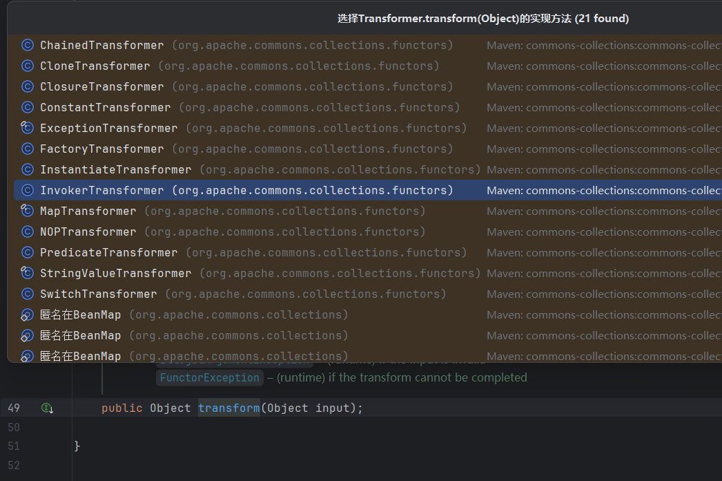 ,第二个用不到就传个null,第三个参数传入invokerTransformer