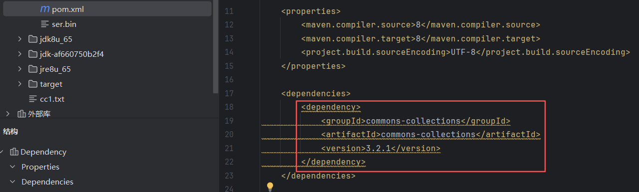 <dependency><groupId>commons-collections</groupId><artifactId>commons-collections</artifactId><version>3.2.1</version>