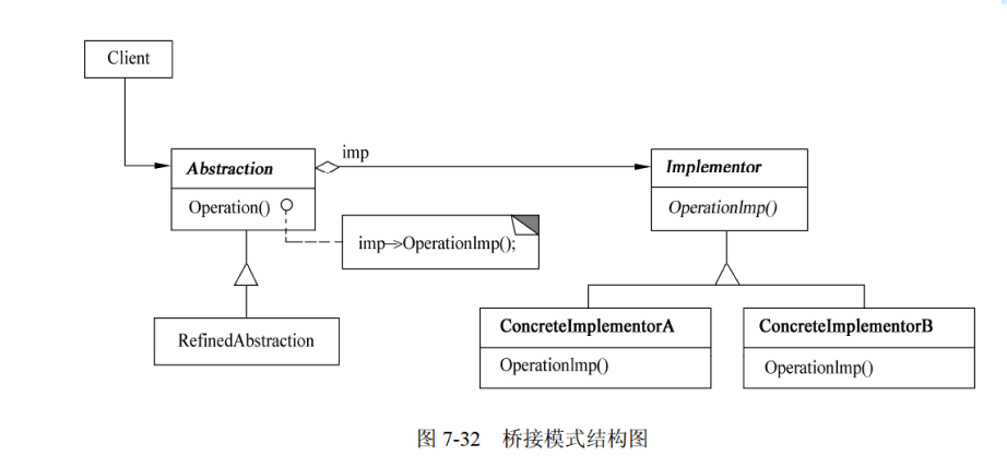 (1)抽象化(Abstraction)角色 :定义抽象类,并包含一个对实现化对象的引用。