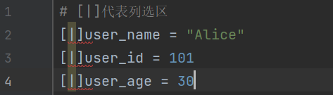 11. 列选择模式 (按住 Alt + 鼠标拖动