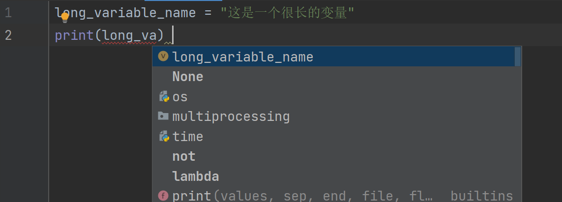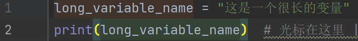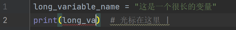 - 操作-情况1:光标在图示位置long_va后,会直接补全