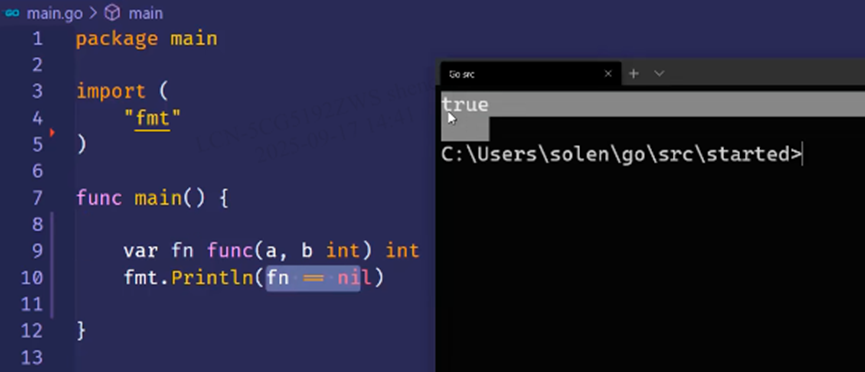 为了防止panic,需要加一个判断,当要操作的变量不为nil时,才进行解引用操作。因为值为nil的接收者和值为nil的参数在行为上并没有区别,所以Go语言即使在接收者为nil的情况下,也会继续调用方法。当变量被声明为函数类型时,它的默认值是nil。