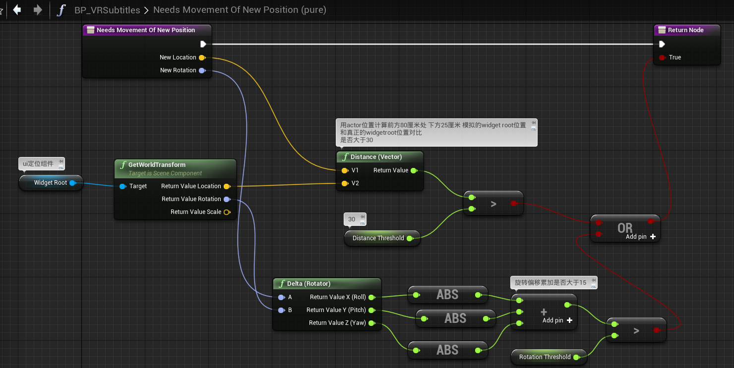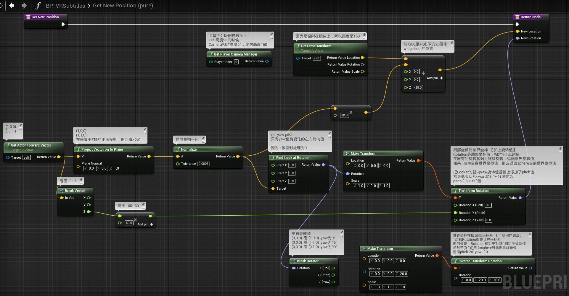 定时器0.2s执行,获取当前吸附在Camera节点上的自身actor的坐标值,并计算前方80cm 下方25cm处的WidgetRoot坐标值
