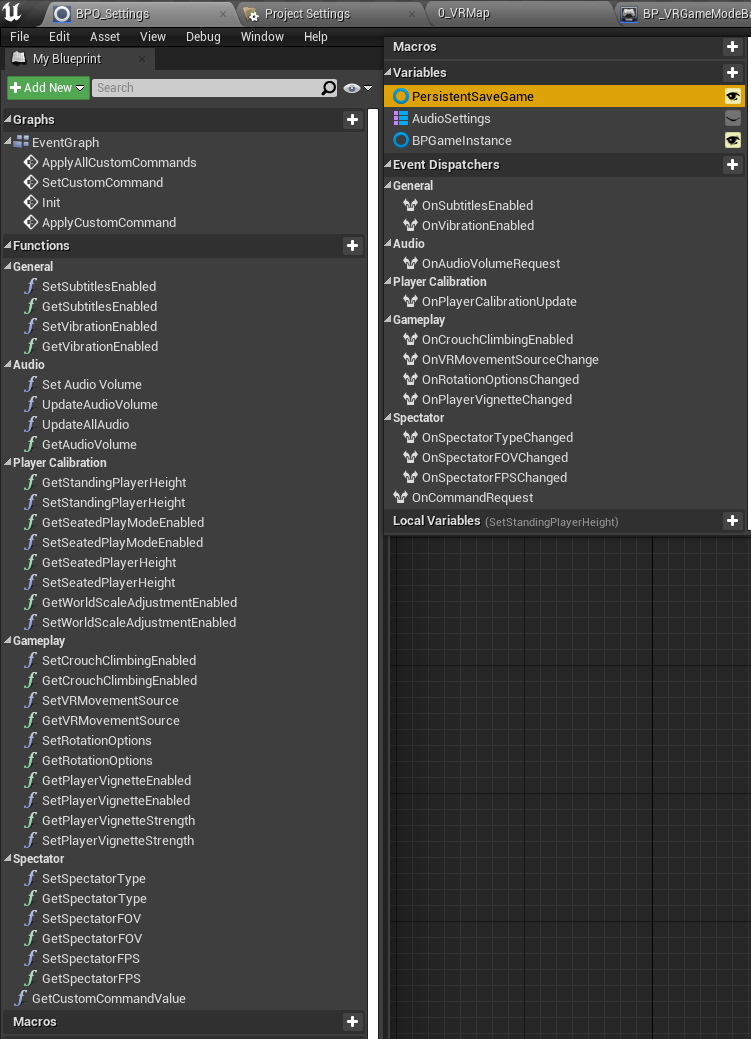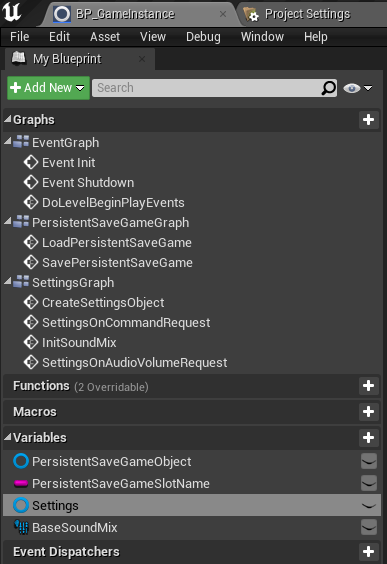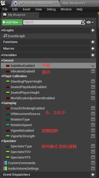 EventGraph 初始化,读取持久存档和全局设置;关闭时,保存存档;关卡启动时,初始化声音