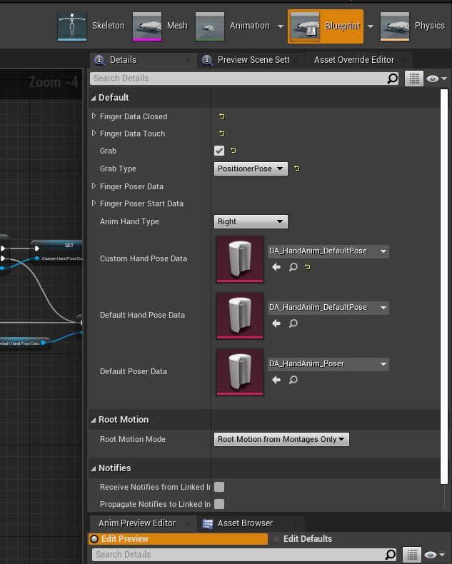 如何实现这些Mesh共用同一个动画蓝图呢,参照如下图。