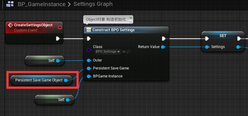 需要调用Setting对象的时候,使用自定义蓝图函数库 BluePrintFunctionLibrary中的Get BPO Game Setting获取Setting对象