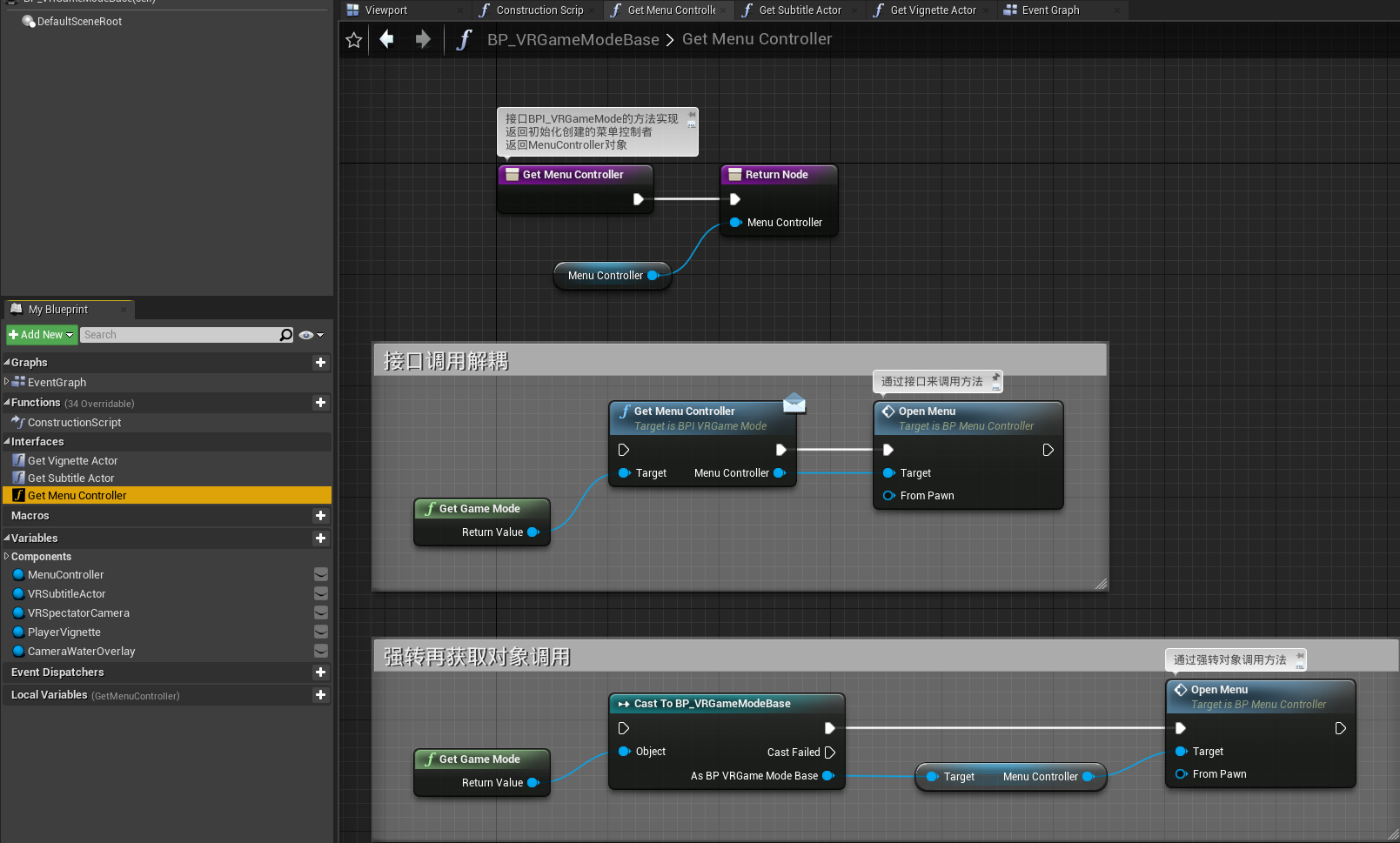 父类:BP_VRGameModeBase 并实现接口 BPI_VRGameMode