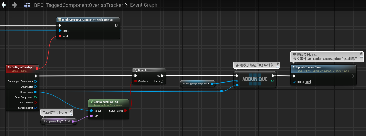 添加自定义组件BPC_TaggedComponentOverlapTracker,用于注册原始组件Overlap的Tracker事件
