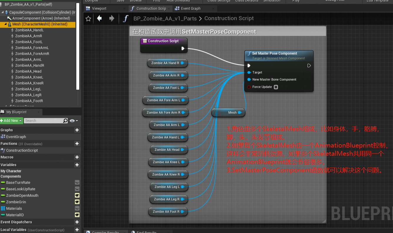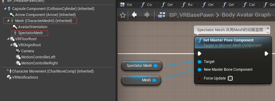 所有的SkeletalMesh共用Mesh节点的动画蓝图。共用动画蓝图节约资源