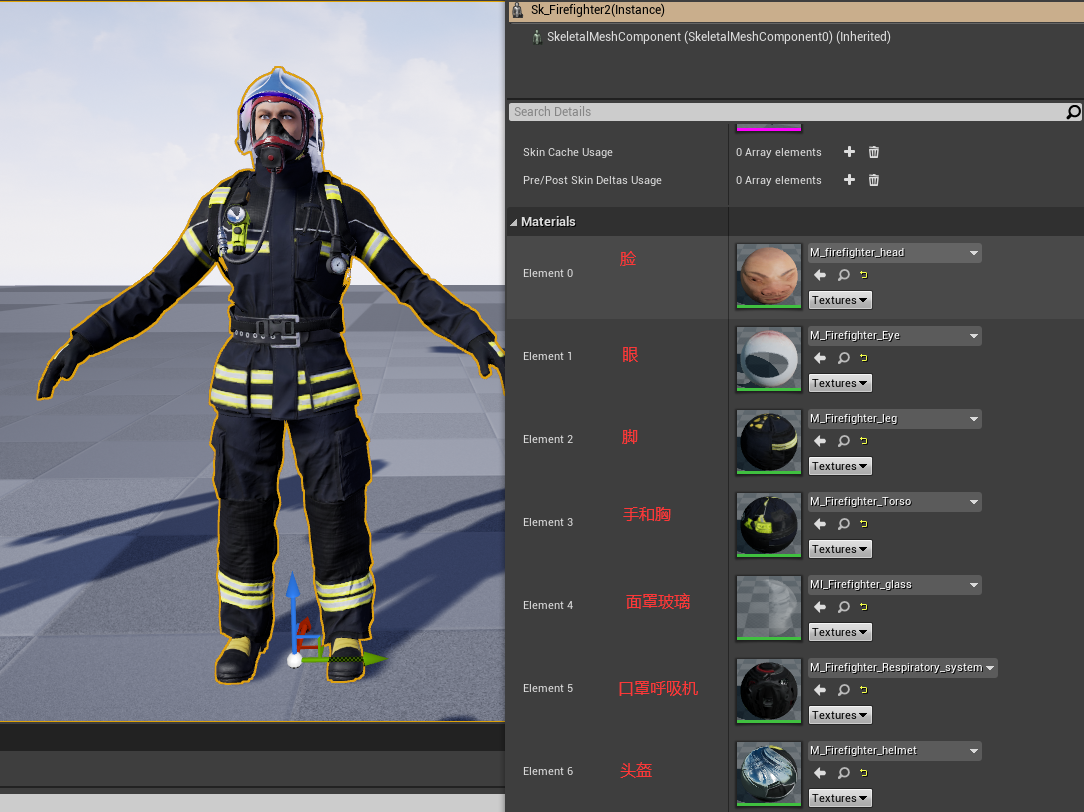 2.通过修改Mesh实现换装。1个角色由多个Mesh组成,比如:头,脚,身体,手都是单独的Mesh。它们共用一个骨骼,共用同一个动画蓝图。