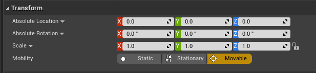 这个蓝图对象 attach吸附到camera上,但是scene节点为绝对坐标系,需要动态修改。