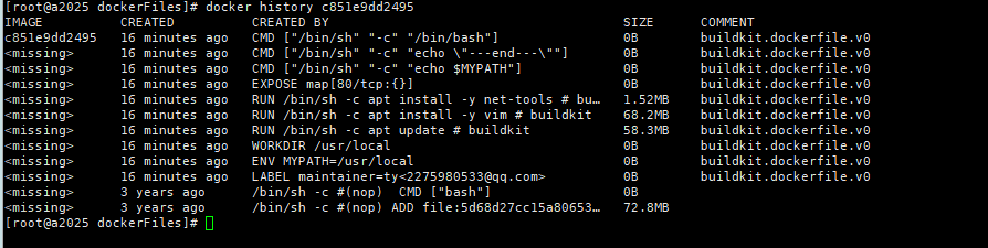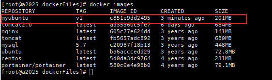 可以看到我们的命令是至上而下执行的,使用images命令可以看到我们创建的镜像