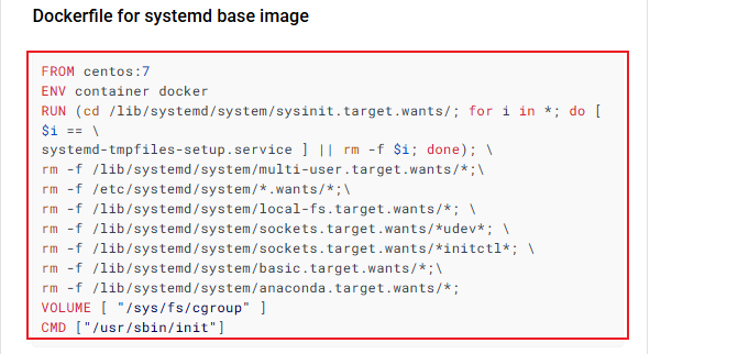 以上是一个用于构建支持 systemd 的 CentOS 基础镜像的 Dockerfile