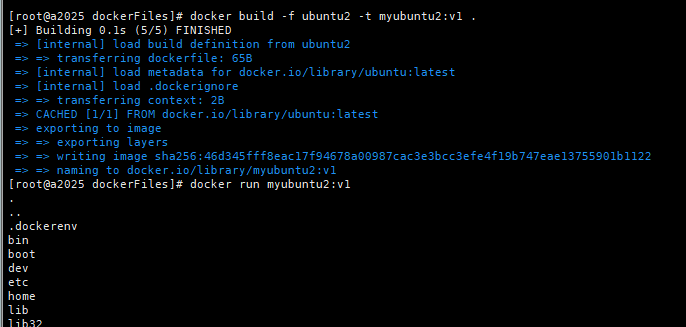 docker build -f ubuntuDockerFile -t myubuntu:v1 .