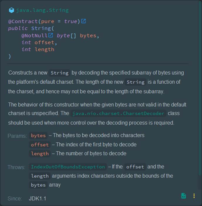 Java java.lang.String @Contract(pure = true) public String( @NotNull byte[] bytes, int offset, int length )