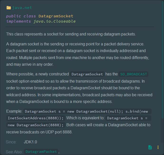 另请参阅:DatagramPacket, |