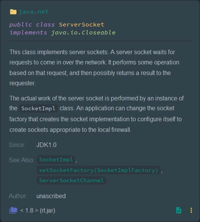 另请参阅:setSocketImplFactory(SocketImplFactory), SocketImpl, SocketChannel. 作者:未署名