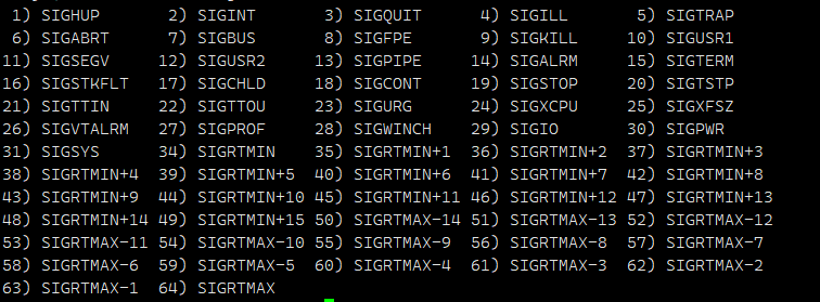 我们可以在shell中使用kill + -(信号编号) + 进程pid 来使用这些信号。