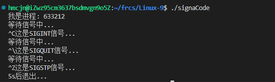 上面发送信号与进程接收信号的过程也是异步的,进程在运行时,接收到了我们发送的信号才会进行后续处理,而不是在等待我们发送信号。